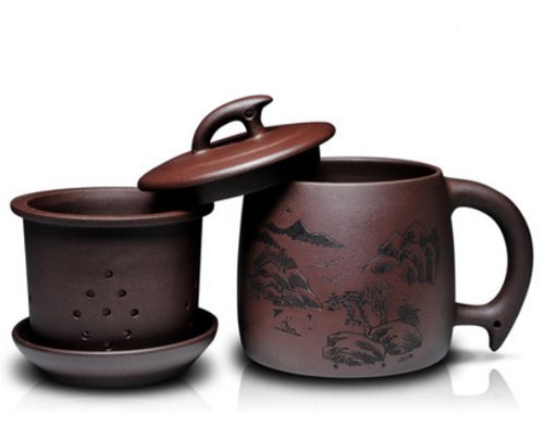 -. Title : Chinese Handmade Yixing Zisha Purple Clay Tea Mug with Infuser, 14 oz.