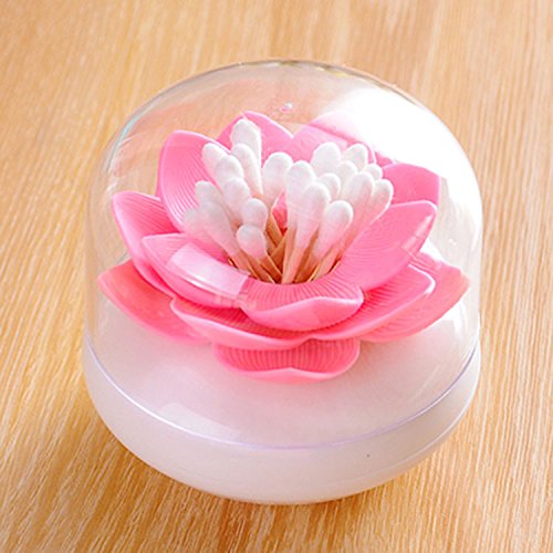 Zapire Lotus Swab Toothpick Holder Flower Shape Q tips Holder Swab Cosmetic Storage Organizer(Pink)