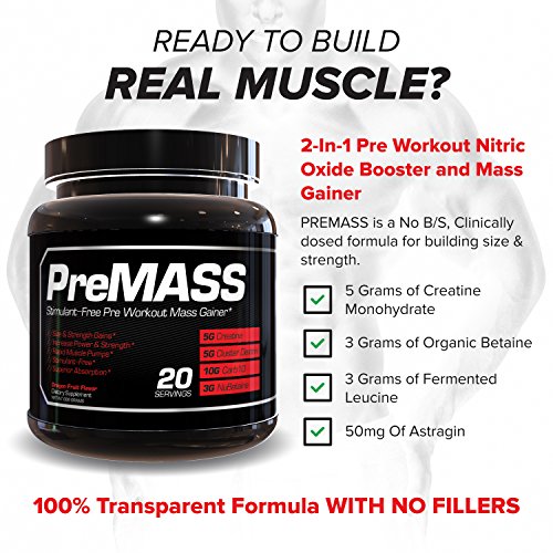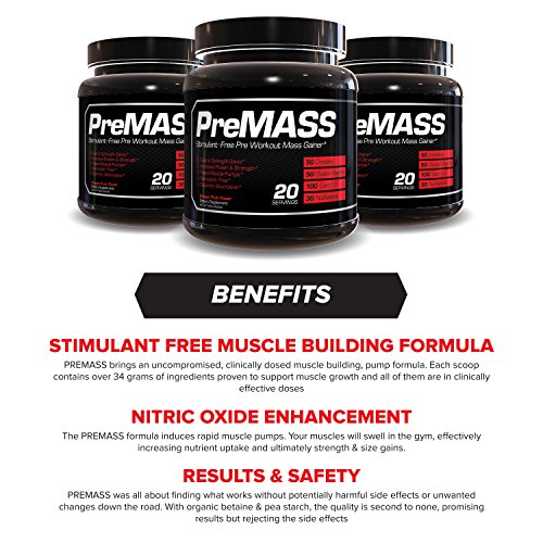 -. Title : PREMASS, Pre Workout Mass Gainer Stack, 2-In-1 Caffeine Free Nitric Oxide Booster & Natural Muscle Builder with No Fillers or Dyes, Top Strength & Muscle Building Supplement with Cluster Dextrin, 688G