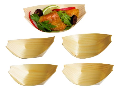 -. Brand : Birch Wood Appetizer Bowls -. Feature : Elegant looking mini disposable appetizer bowls / Thin, finished birch wood / Add an elegant and upscale look to your dishes / Ideal for appetizers, desserts, small portions / Large size (7.5") includes 50 bowls, Small size (4.25") includes 100 bowls per pack. Not recommended for liquid food items -. ProductGroup : Kitchen -. ProductTypeName : KITCHEN -. Title : Thin Birch Wood Boat Bowls