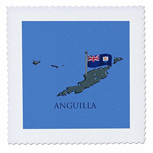 3dRose qs_99108_3 The Map and Flag of The Caribbean Country of Anguilla-Quilt Square, 8 by 8-Inch