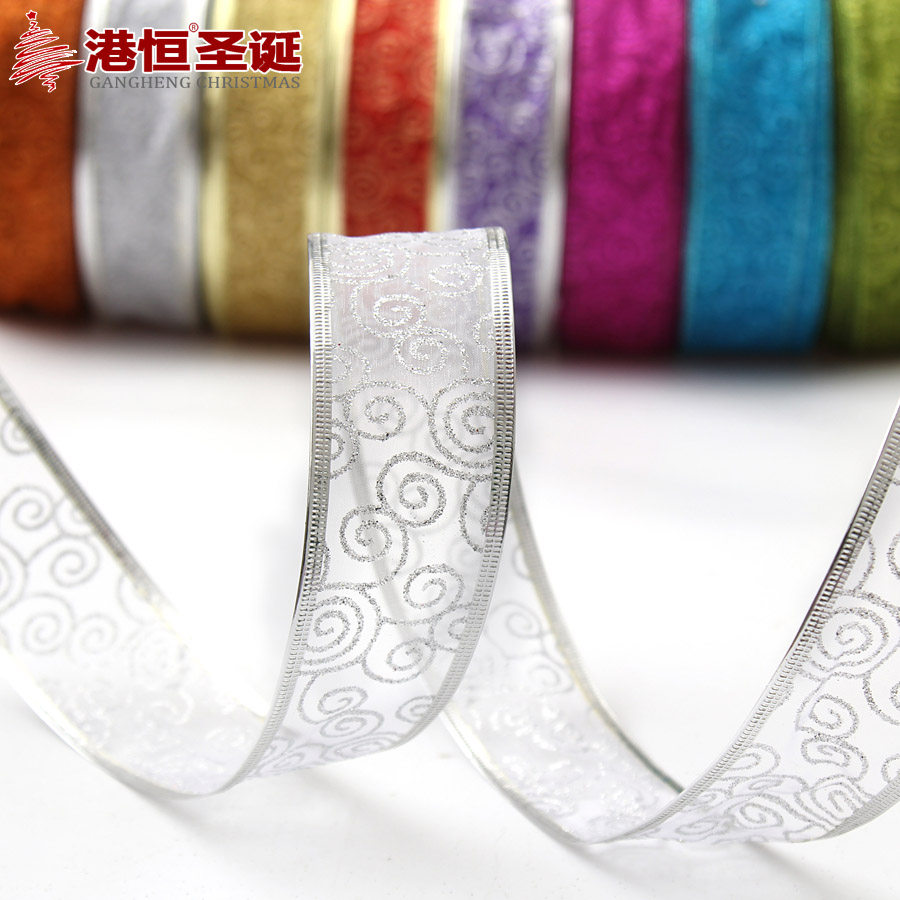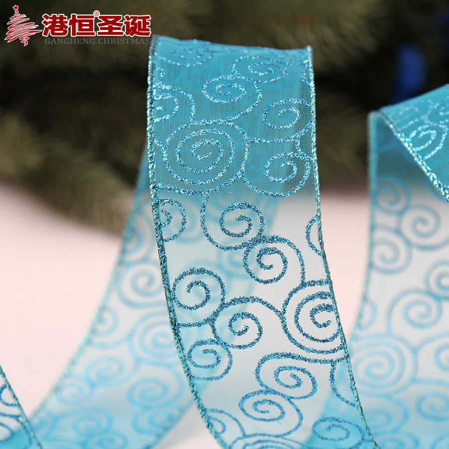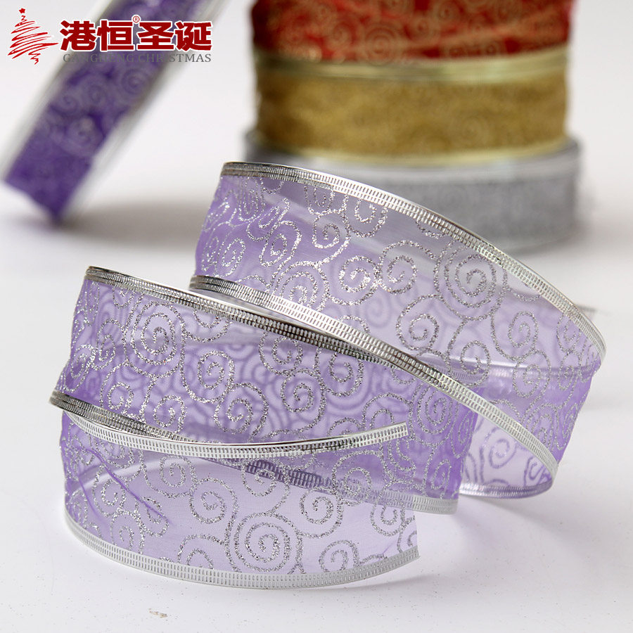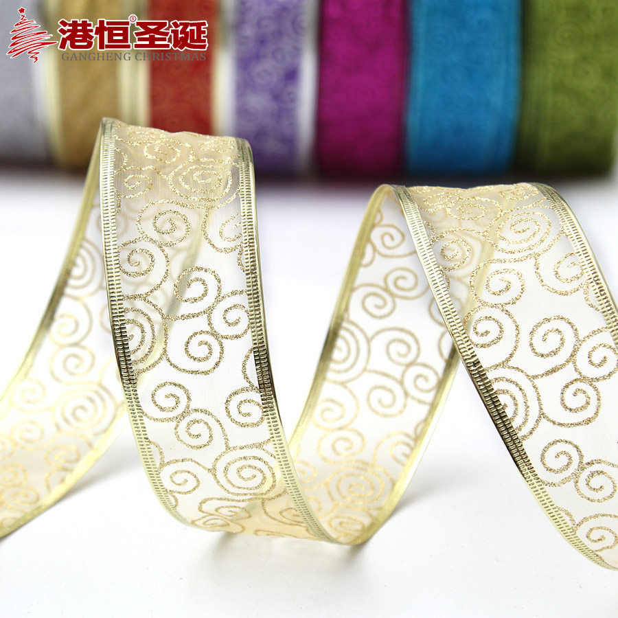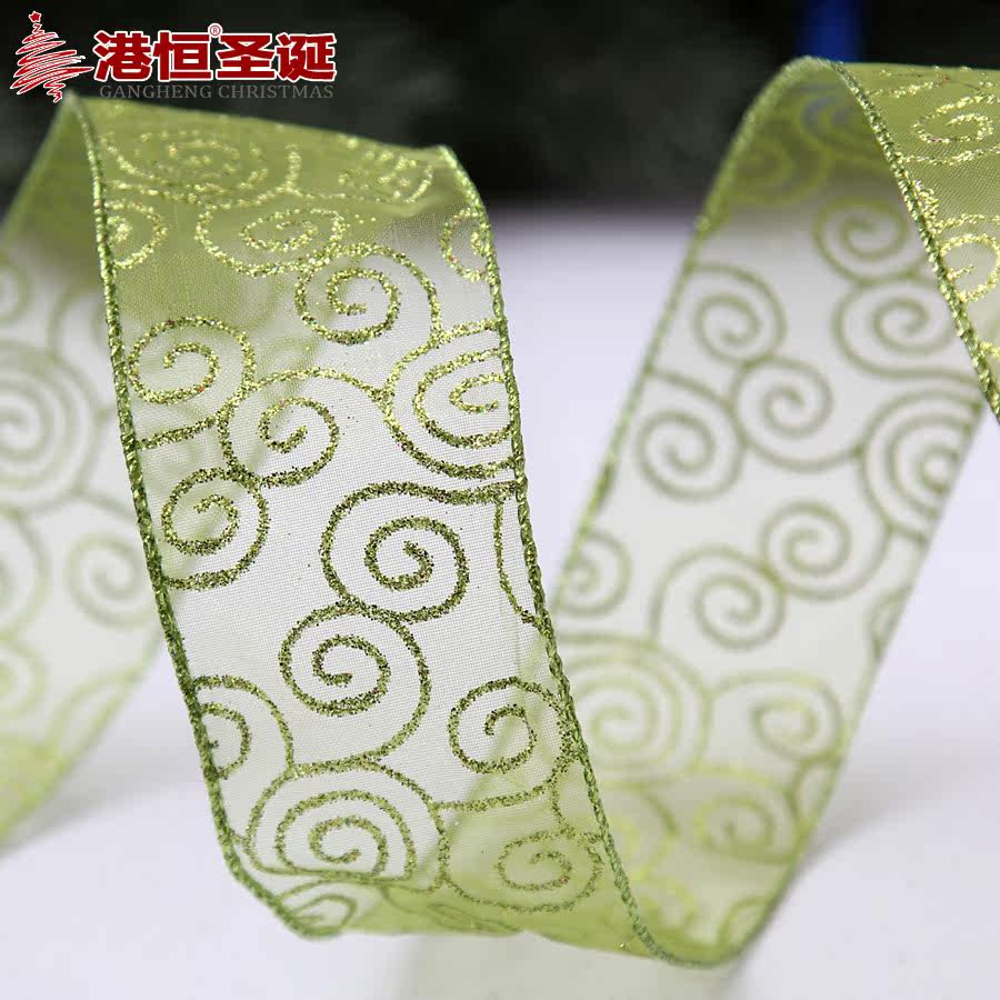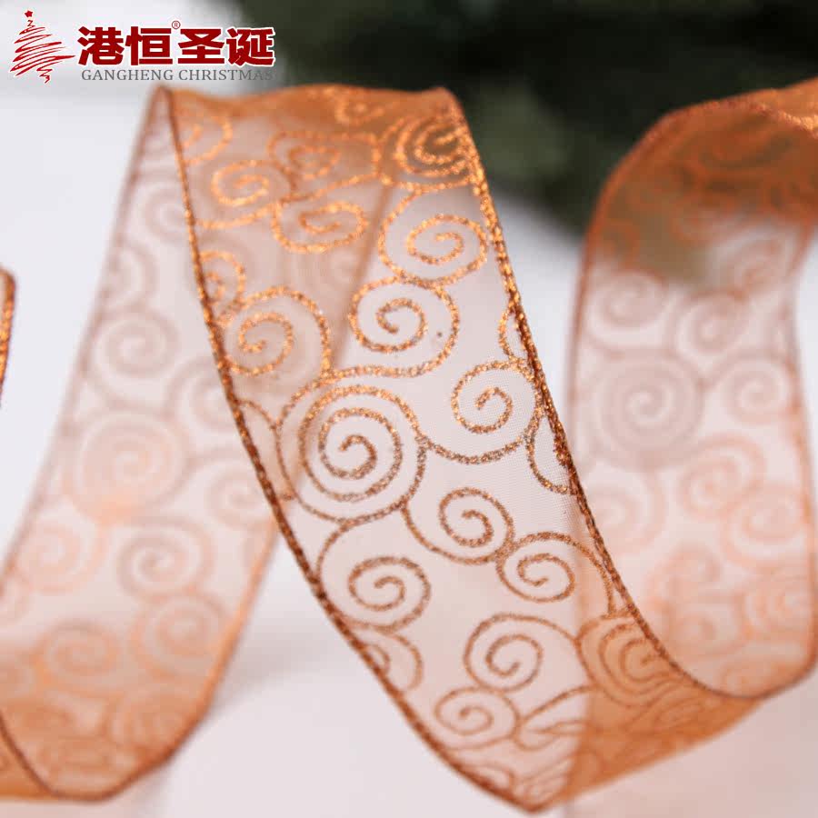 港恒200cm纱底印金色葱粉圣诞装饰织带 圣诞树装饰品 圣诞丝带