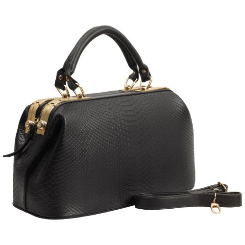 - Title : MG Collection ELPIDA Black Faux Crocodile Rhinestone Accent Doctor Style Handbag