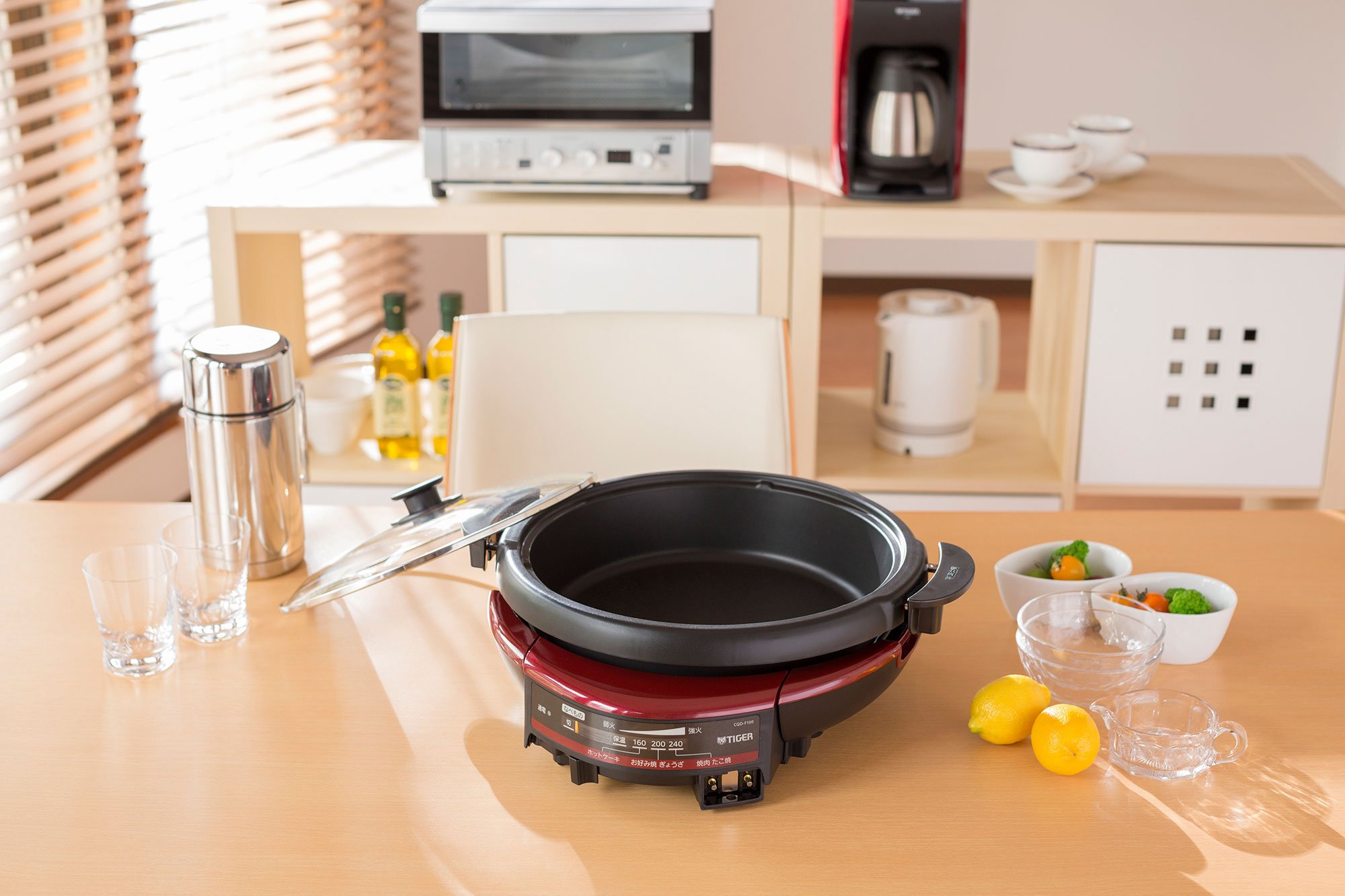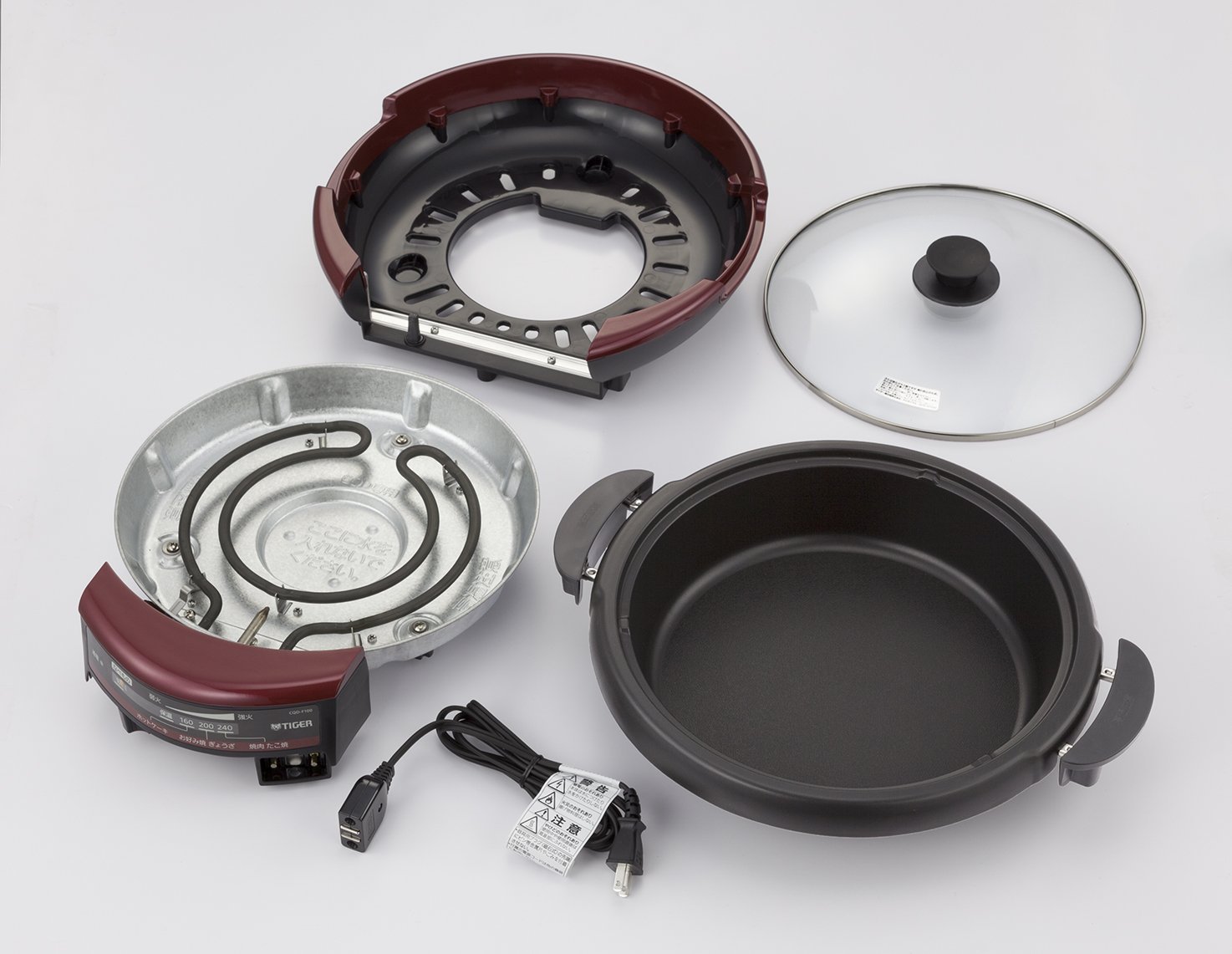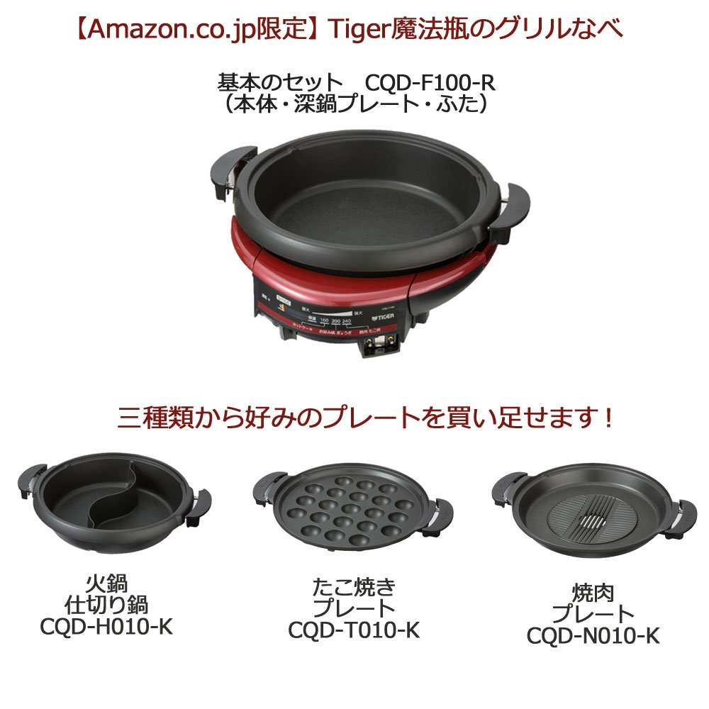 There is a partitioned pan with a separately sold option, a grilled meat plate, and a Takoyaki plate.