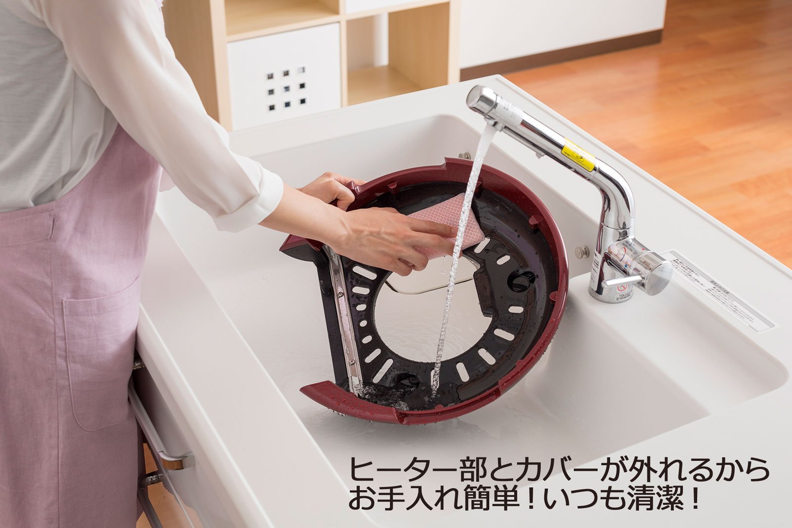 Easy to keep safe and easy "Main body guard washing OK", because it can separate the main body guard around the heater, it is easy to clean.