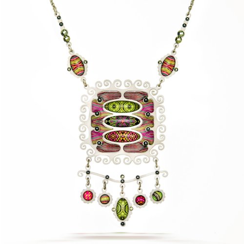 Conceived and made by Artazia in the US, this intricate necklace reflect textures and colors and combined with Austrian crystals form an object of captivating beauty. The jewelry collection conveys a refreshingly unique and highly creative signature. Whether dressing up in jeans and a T-shirt, or accessorizing a great dress, these pieces are the perfect complement to any outfit. All items in this collection are individually designed by Artazia and are made in limited editions in the United States.Feature