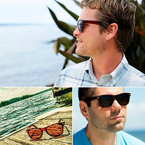 Are you looking for a more stylish, unique alternative to plain polarized sunglasses? Are you searching for a high quality, polarized pair of sunglasses that won't break the bank? Our Polarized Sunglasses are the perfect solution! Perfect For All Activities. Driving, sports, shopping, time at the beach, and many others! Glare Eliminating, High Definition Vision. POLARIZED lenses provide maximum HD vision and decrease sun glare. Stylish and Classic. Plastic frame front, wood temples, and lenses similar to original classic sunglasses. Size 58-14-150 BONUSES! ? Premium hard case for protection. ? Soft, portable case. ? Clip so it can hang where you want it to. ? Screwdriver to help keep your sunglasses feeling brand new. ? Microfiber cloth for easy cleaning. ? Eye Health E-Book by Dr. Jenna. 100% SATISFACTION GUARANTEE! Love it or return it. Our product comes with a full, 100% money-back guarantee. If for any reason you are unsatisfied, just email us stating the reason you are unhappy, and you will receive a courteous and prompt refund within 24 hours. It's that simple.