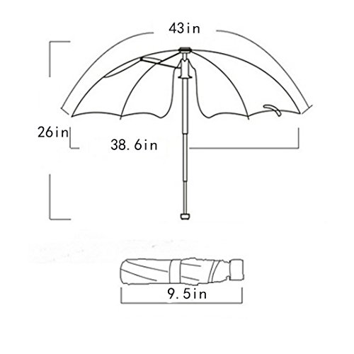SPF: UPF40%, UAV<5%. Closing length: 9.5in. Opening diameter: 38.6in.