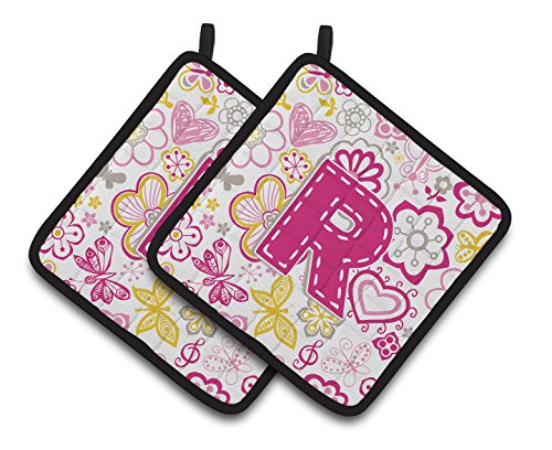 Caroline's Treasures Letter R Flowers & Butterflies pink Pair of Pot Holders CJ2005-RPTHD, 7.5HX7.5W, Multicolor