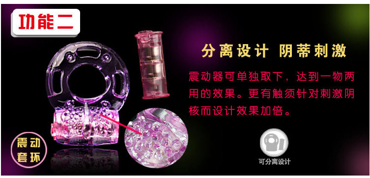It has the initiative to extend the time to enhance sexual vitality, sexual energy as the main purpose of the vibration function. This vibrating ring has its unique design and clever place, not just between the two annular space and material, is the solution to the size of the tension, the buffer tightening force, resulting in congestion-free long-term use, cause harm to men. G point caused by the design of a very cute dolphin, whole body covered with bumps stimulate the female, so that users can experience the ultimate challenge of life in the "over-power" felt like the. Timely and effectively compensate for lack of sexual intercourse between men and women and embarrassment, vibration time the product is about 25--40 minutes, allowing you to enjoy sex life without ~ ~!