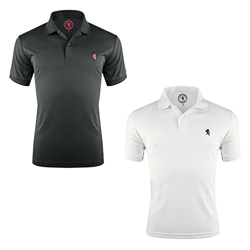 Alfred Morris Men’s Polo Shirts - 2 Pack - Comfortable Short Sleeve Polo Shirts - American Classics (Large, Black / White)