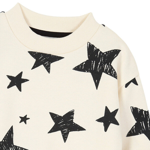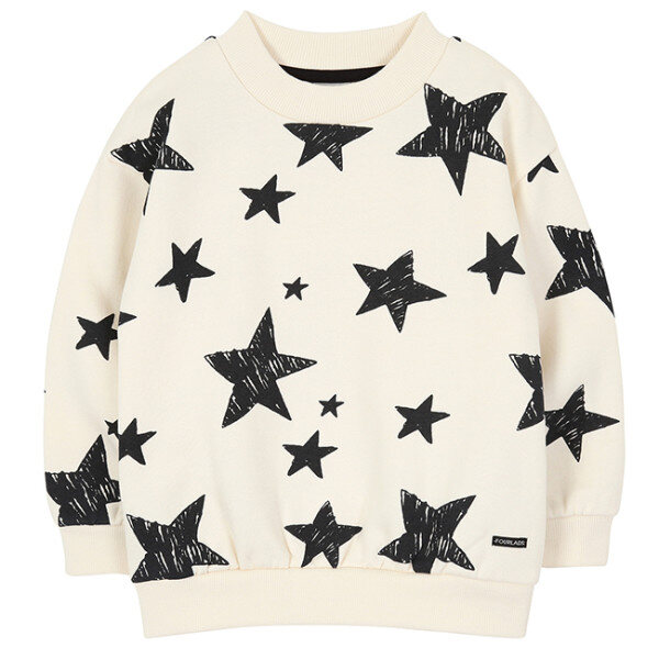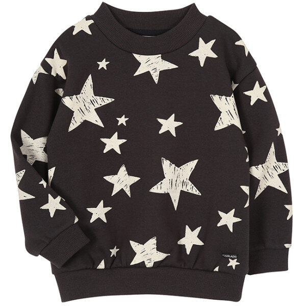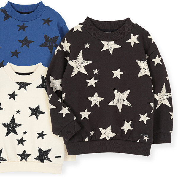 세 가지 컬러의 별패턴 맨투맨이에요. 아이보리,차콜,블루 세 가지 컬로로 구성되어 있어서 어디에나 코디하기 쉽답니다. 귀여운 배기핏 바지와 같이 코디하면 더욱 사랑스럽고 귀여운 룩을 완성 할 수 있답니다.