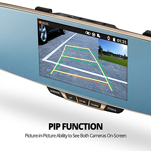 Ignition detection: The device is automatically turned on and recording when the engine starts, and automatically turned off shortly after the engine is off. When in the motion detection mode, if the lens detects any motion, the device starts video recording automatically, and will stop video recording shortly after the lens does not detect any motion. Crash detection: Highly-sensitive G-sensor powered automatic video recording and video file locking when a collision or crash is detected. The sensitivity of the G-sensor can be set to different levels. Parking Monitoring: When the vehicle parked, the device is automatically turned on and recording when a vibration is detected. Picture-in-picture display: The Front view and rear view videos are displayed on the screen in a picture-in-picture appearance.