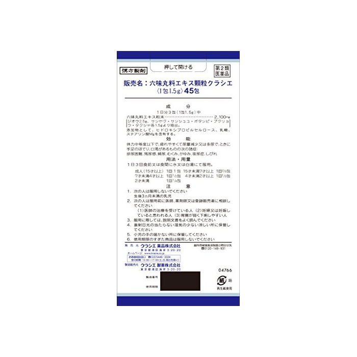 원본상품명: 【第2類??品】六味丸料エキス顆粒クラシエ 45包