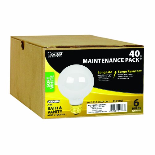 Feit Electric 40G25/W/MP-130 40-Watt G25 Bath and Vanity Globe, White, 6 Pack