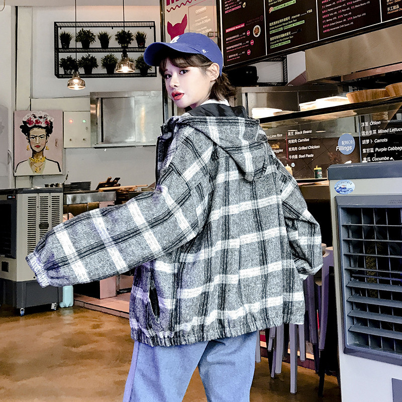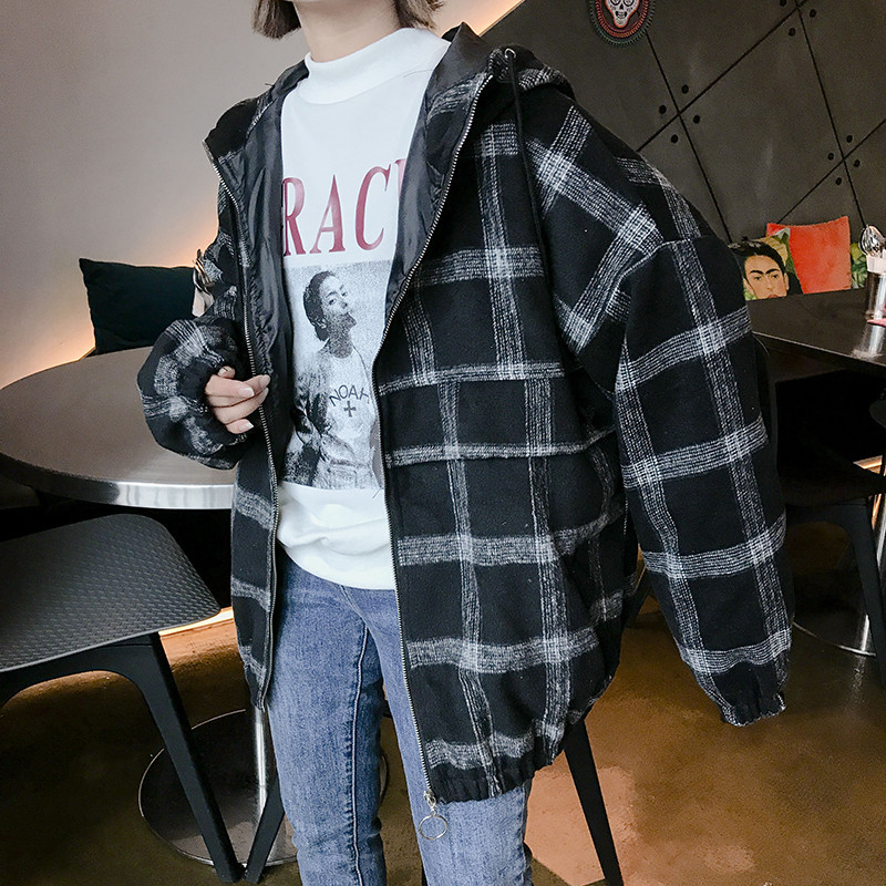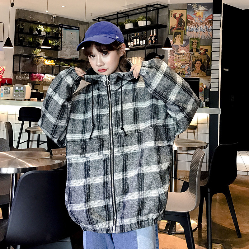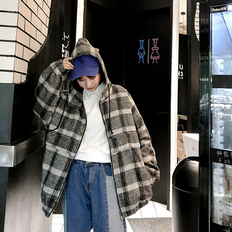| トレンドのチェック柄!ビッグシルエットのフード付きブルゾン! ルーズでかわいくカジュアルに演出できるアイテム♪ 管理番号:ptnma370 カラー