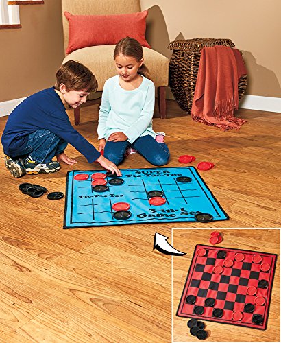 Studio : The Lakeside Collection Publisher : The Lakeside Collection Binding : Toy Product Description This 3-In-1 Giant Reversible Game Mat is a fun and entertaining way to bond on game night. Gather everyone around to play 3 classic games on this soft, oversized mat. Each game stimulates the mind and encourages friendly competition. The mat can be folded up for storage. Comes with 24 playing pieces, 12 red and 12 black. Reversible game mat, 25-1/2" sq., Playing pieces, 3" dia., each. Polyester and polypropylene. Imported. For ages?3 and up. - Take it anywhere