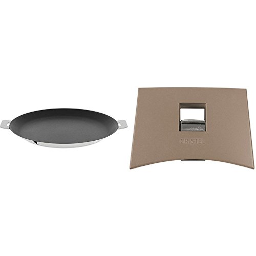 -. Title : Cristel CR30QE Non-Stick Crepe Pan, Silver, 12" with Cristel Mutine Plmat Side Handle, Taupe