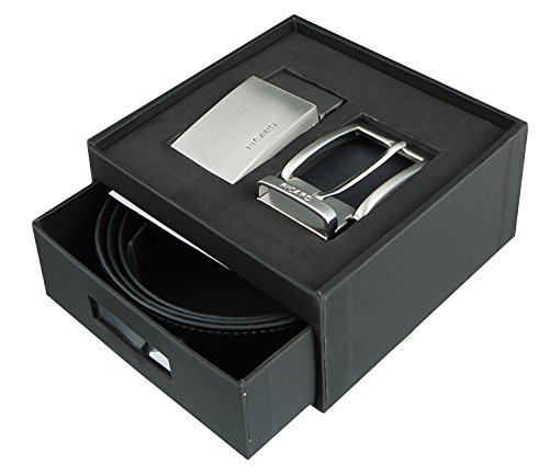 -. Feature : Größe/Länge: 120 cm, kürzbar / Machart: Set bestehend aus 2 Schnallen mit kürzbarem Wendegürtel in Schwarz/Braun / Material: Leder, Metall silberfarben satiniert / Verschluss: Dornschnalle, Koppelschnalle
