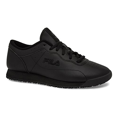 Fila Women's Memory Viable Slip Resistant Sneakers, Black Leather, 9 M