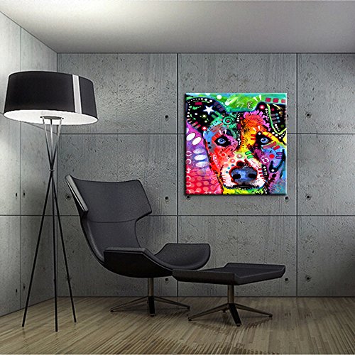 -. Binding : Kitchen -. Brand : Creative Art -. Feature : High Quality Glossy Canvas with long lasting durability P.R.Inted at high resolution using the latest state of the art colour technology ensures sharp & vivid images every time / Professional artwork is used for a sharp hi-resolution image / Size: 24''x24''(60x60cm) Ready to Hang / The Canvas has been expertly stretched (gallery wrapped)over 1'' frames which come ready to hang with hooks / We inspect the artwork in every step of the finishing process, and then carefully pack your artwork to make sure it reaches you in the finest condition -. ProductGroup : Home -. ProductTypeName : HOME -. Title : Creative Art - Abstract Dog Art P.R.Ints,Colorful Pet Canvas Wall Art, Framed Animal Canvas P.R.Int
