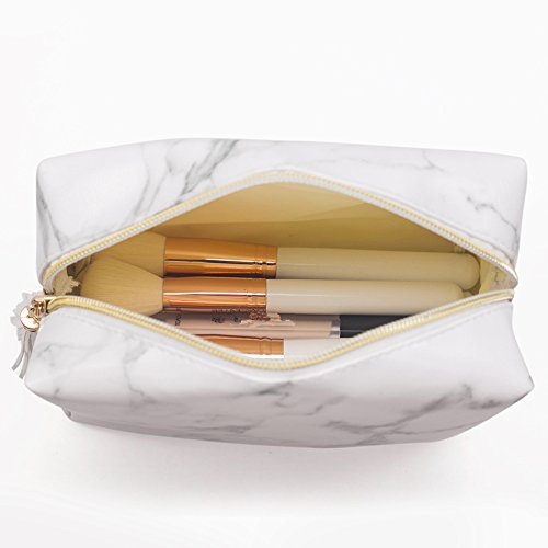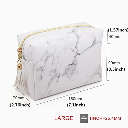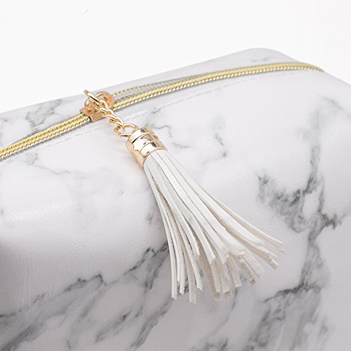 Joyful High Capacity Marble Pattern Cosmetic Bag Makeup Brushes Kit Bag Handbag Toiletry Case Gold Zipper Bag With Beauty Tassels (Large:7.1 x 5.1 x 2.7 inch)