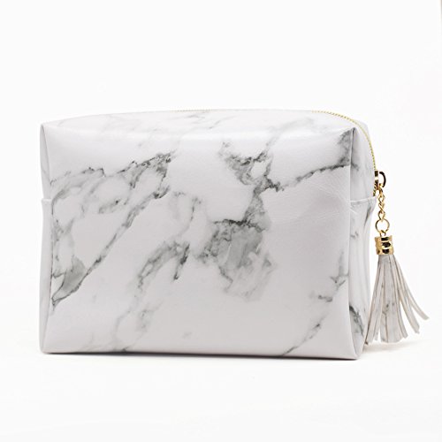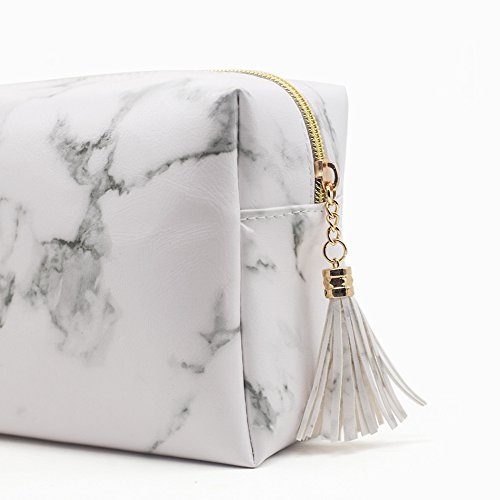 Appearance and design: marble pattern looks neat, the gold zipper securely keep the bag closed and prevents very small items from falling out and with beautyful tassels