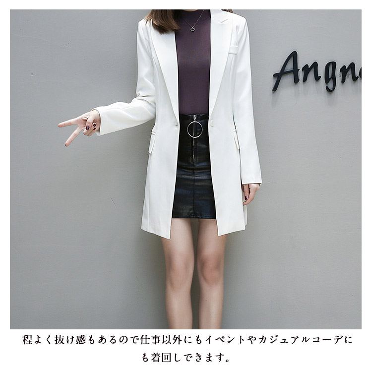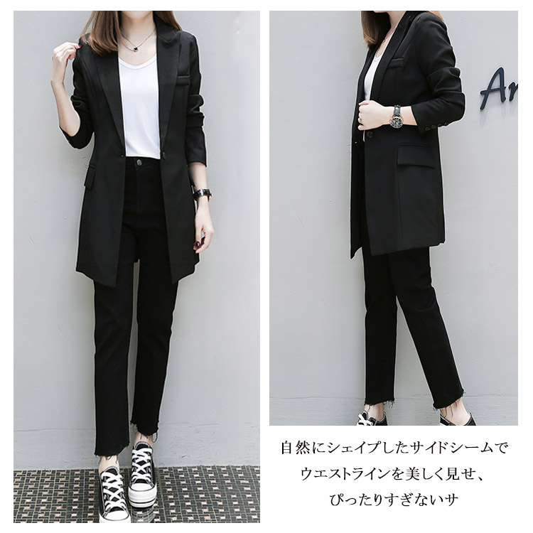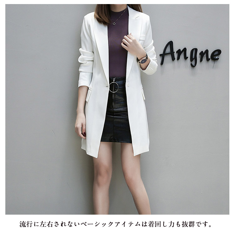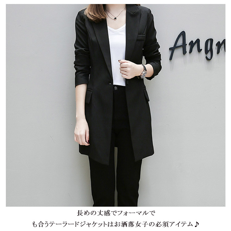 | スッキリとしたデザインのカジュアルなテーラードジャケット!長めの丈感でフォーマルでも合うテーラードジャケットはお洒落女子の必須アイテム♪自然にシェイプしたサイドシームでウエストラインを美しく見せ、ぴったりすぎないサイズ感がやわらかな女性らしさも感じさせるフォルムに。程よく抜け感もあるので仕事以外にもイベントやカジュアルコーデにも着回しできます。流行に左右されないベーシックアイテムは着回し力も抜群です。 | |