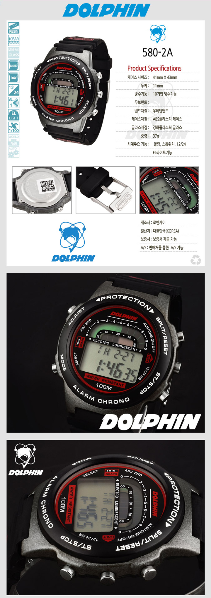 [DOLPHIN] Alarm Chronograph 100M waterproof electronic wrist watch 580-2A