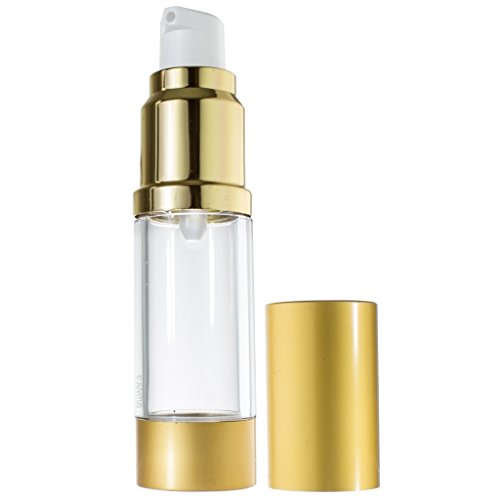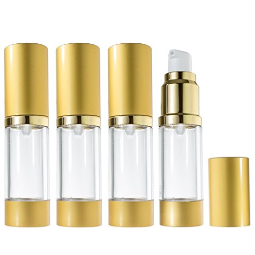 Airless Pump Bottle Refillable Travel Container in Gold - 15 ml / 0.50 oz (4 pack)