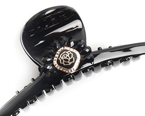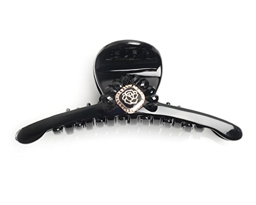 - Title : Helen Accessories Black Classic Hair Claw with Oval Flower Design - Golden Rules Collection