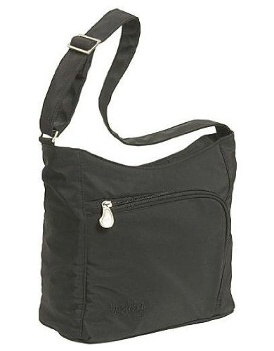 A Traditional mid-sized handbag with a sleek waterfall pocket and secure zippered exterior pockets.