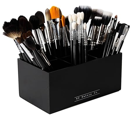 - MAKES LIFE EASIER : Takes up very little room on your vanity tabletop with 3 slots to separate your makeup brushes from you eyeliners and lip liners pencils