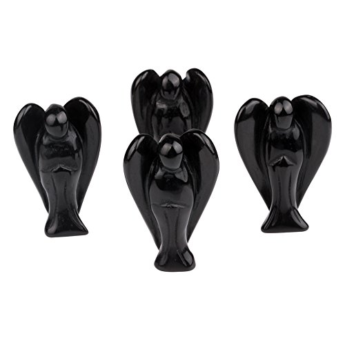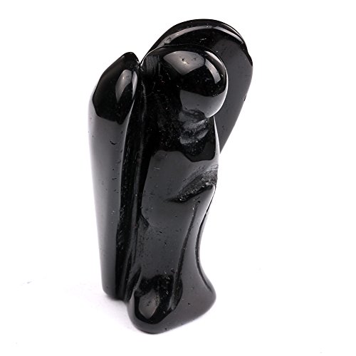 banshren Natural Carved 2 Inches Black Obsidian Angel Figurines Reiki Healing Statue