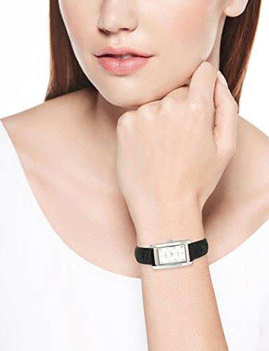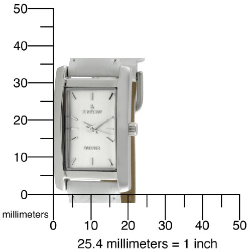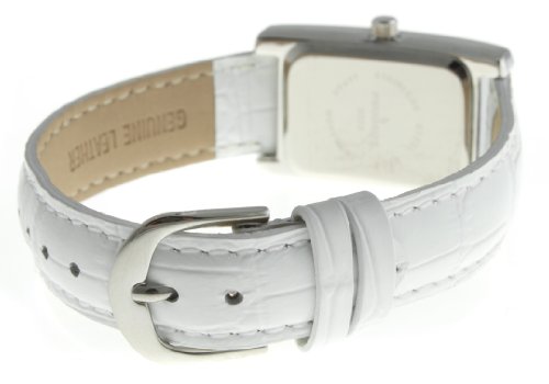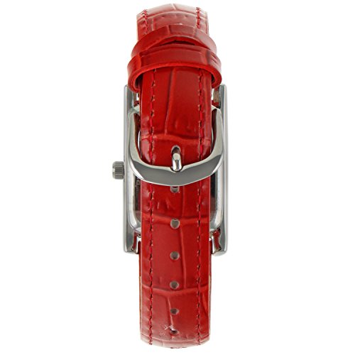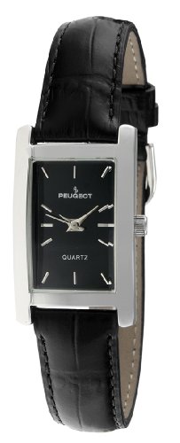 Peugeot Women's Rectangle Silver-Tone Leather Strap Dress Watch 3008SBK