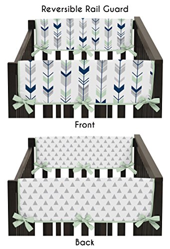 -. Title : Sweet Jojo Designs Grey, Navy Blue and Mint Woodland Arrow Teething Protector Cover Wrap Baby Crib Side Rail Guards - Set of 2