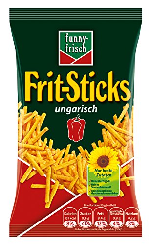 -. Feature : Funny-Frisch Frit-Sticks schmecken unglaublich knusP.R.Ig und unschlagbar ungarisch! / Knackfrische, knusP.R.Ige Kartoffelsstreifen mit der unverkennbar ungarischer Gewürzrezeptur / Für jede Party oder für Zwischendurch ein perfekter Knabberartikel