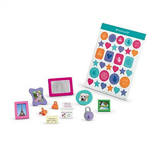 - My American Girl® dolls can keep track of everything they need for class with this locker set! It includes: One metal locker—the door opens to reveal a storage shelf and coat hooks A faux lock with a dial that turns A removable mirror, four colorful frames, and two orange clips for decorating Two photos, two postcards, three friendly notes, and a sheet of removable stickers to personalize the locker