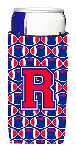Letter R Football Crimson and Yale Blue Ultra Beverage Insulators for slim cans CJ1076-RMUK