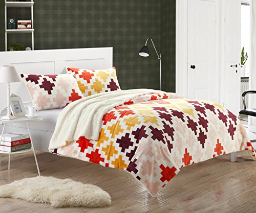Chic Home 3-Piece Mia Plush Microsuede Printed Sherpa Blanket, King, Orange/Red/Yellow/Plum/White