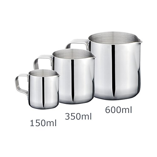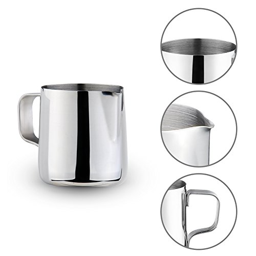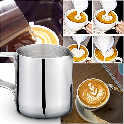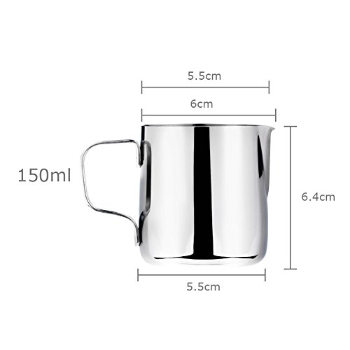 Weksi 밀크 pitcher 라테아토핏차 밀크 거품이 일어라 더구 두께의 스테인레스강의 밀크 거품기 실버 150ml