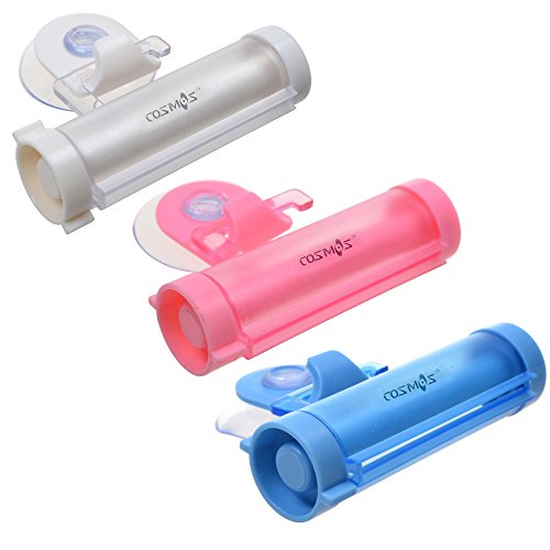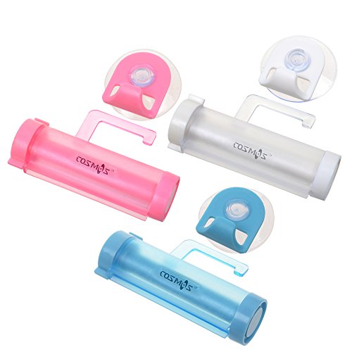 COSMOS Pack of 3 Suction Cup Tube Squeezer Toothpaste Dispenser Holder, Random Colors