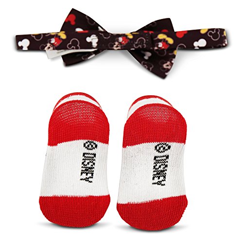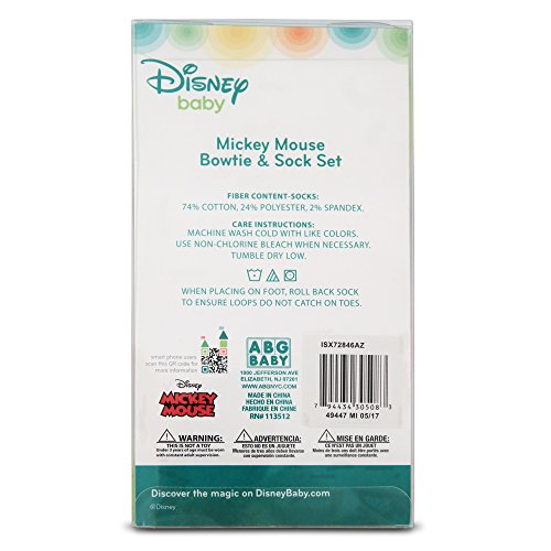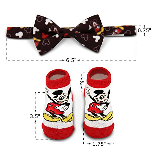 Studio : ABG Accessories Children's Apparel Publisher : ABG Accessories Children's Apparel Binding : Apparel Product Description Dress him up in true mickey mouse style with this adorable bow tie and booties gift set featuring Disney instantly recognizable mickey mouse. An adorable present for a baby shower or any occasion, the black bow tie features mickey mouse head imagery. Coordinating booties have mickey mouse imagery on the front and Disney logo on the back. Soft terry booties are a blend of cotton, polyester and spandex, providing comfort and breathability for your baby's tender skin. Designed for baby boys 0 to 12 months, the cotton bow tie has an easily adjustable velcro closure for a comfortable fit. Create cherished memories with this cute mickey mouse bow tie and booties gift set. He'll grow to love the magical world of Disney for years to come. 0