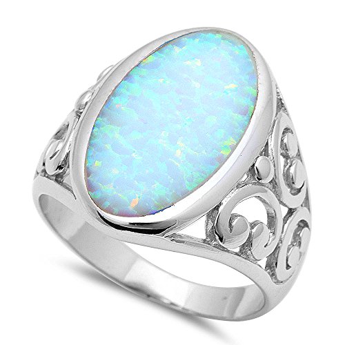 -. Title : Best Seller Elegant Oval Shape Lab Created White Opal .925 Sterling Silver Ring Sizes 5-11