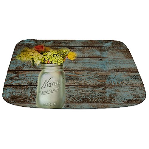 -. Title : CafePress - Mason Jar Floral Barn Wood Western Country - Decorative Bathmat, Memory Foam Bath Rug