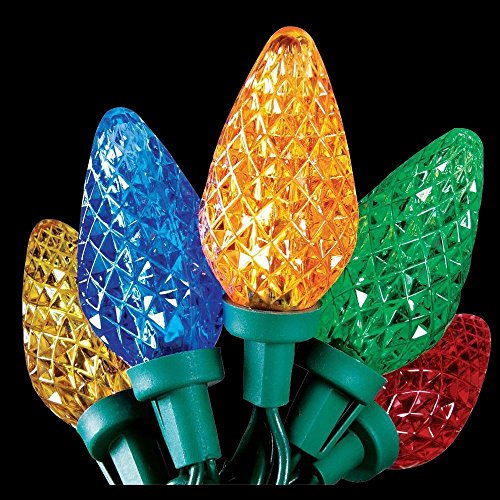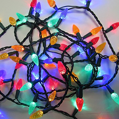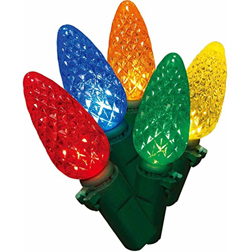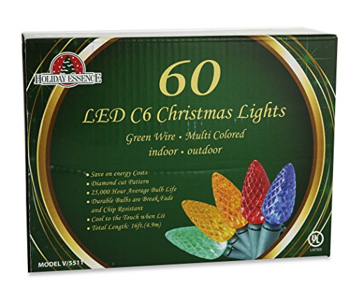 Led Christmas Multi Color Lights 60 C6 Faceted LED Decorative String Light Set Indoor and Outdoor Use – Energy Efficient LED Bulbs with Green Wire, UL Listed Professional Grade by Holiday Essence