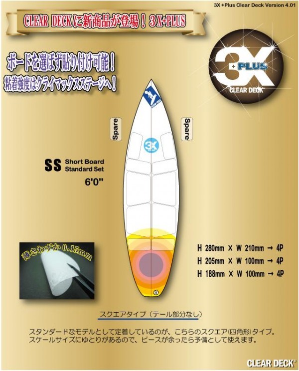 | サーフィン革命★お持ちのサーフボードに!半透明デッキパッド! |