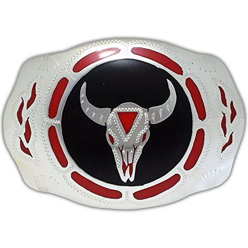 Product Description German silver, rectangular buckle with a large skull inlaid with red resin. Highlighted by a black resin inlay background and red resin inlay round frame. Side borders enhanced with red resin inlay shape 0
