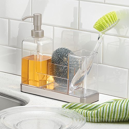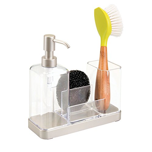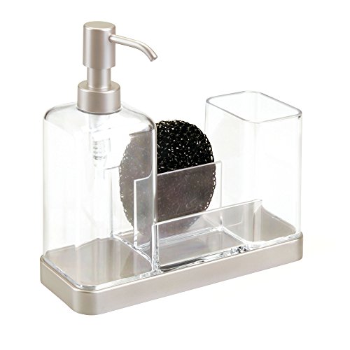 mDesign Soap Pump and Sponge Caddy for Kitchen Sink - Matte Satin/Clear