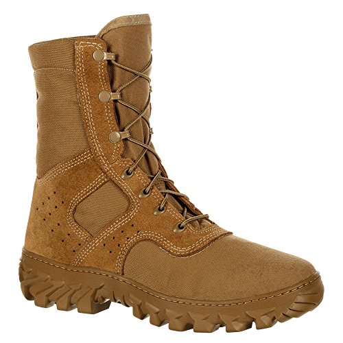 Binding : Apparel Product Description You don't get this with many military boots, a Snakeproof toe. For protection, performance, and comfort, check out the Rocky S2V Enhanced Jungle Boots. This is a Coyote Brown military boot made in the USA. It's Berry-Compliant, uniform-compliant (AR 670-1) and GSA-approved. The puncture-resistant duty boot prevents injury from sharp items you may step on. It's also designed with a snake guard in the toebox to protect you from snake bites. There's Roll-Stop Ankle Stability to stop ankle roll while running on uneven terrain and on long marches. To save your feet from unending wetness and jungle rot, choose a military boot with Advanced S2V Sieve technology. It circulates air in and water out as you step, a superior design to standard drainage holes. For protection from thorns, brush and other objects that can try to get into your boot, there's an embedded thorn shield across the vamp. And the tongue is made from tough abrasion-resistant CORDURA material. Reinforcing this tough jungle boot is a proprietary high-walled Vibram sole. It's stitched and cemented to the upper for long-lasting durability. Speed lace eyelets and NATO hooks get your boot on quickly and securely. Beyond protection, function and performance, you deserve a comfortable combat boot. The Air-Port Cushion Footbed is comfortable and designed to last, moving air around your foot as you walk. Further comfort comes from the Dri-Lex boot lining. It wicks sweat away from your foot while an Aegis Microbe Shield that fights bacteria. For hours of marching or standing, a fiberglass shank offers arch support. Material: Cordura. 0